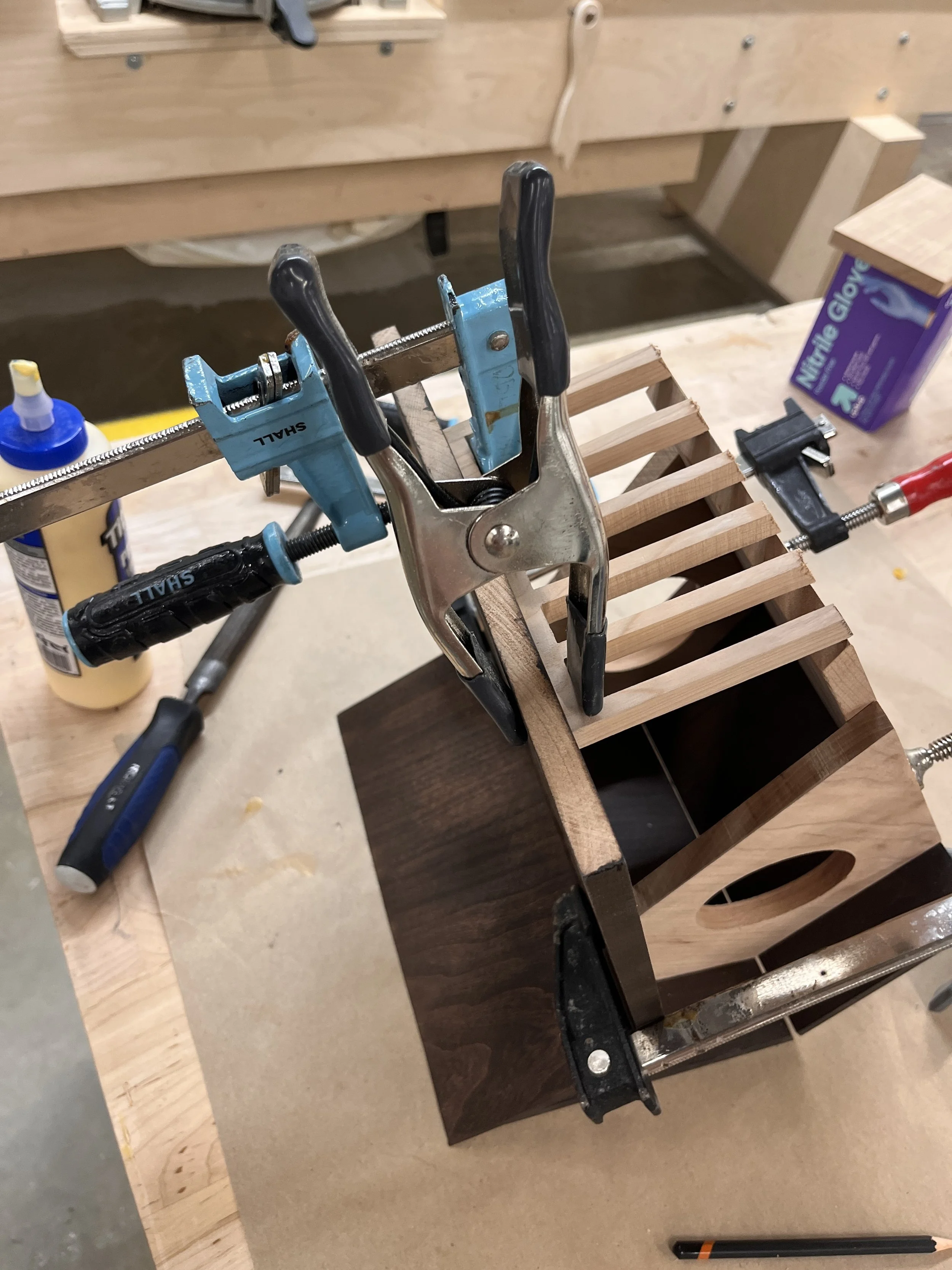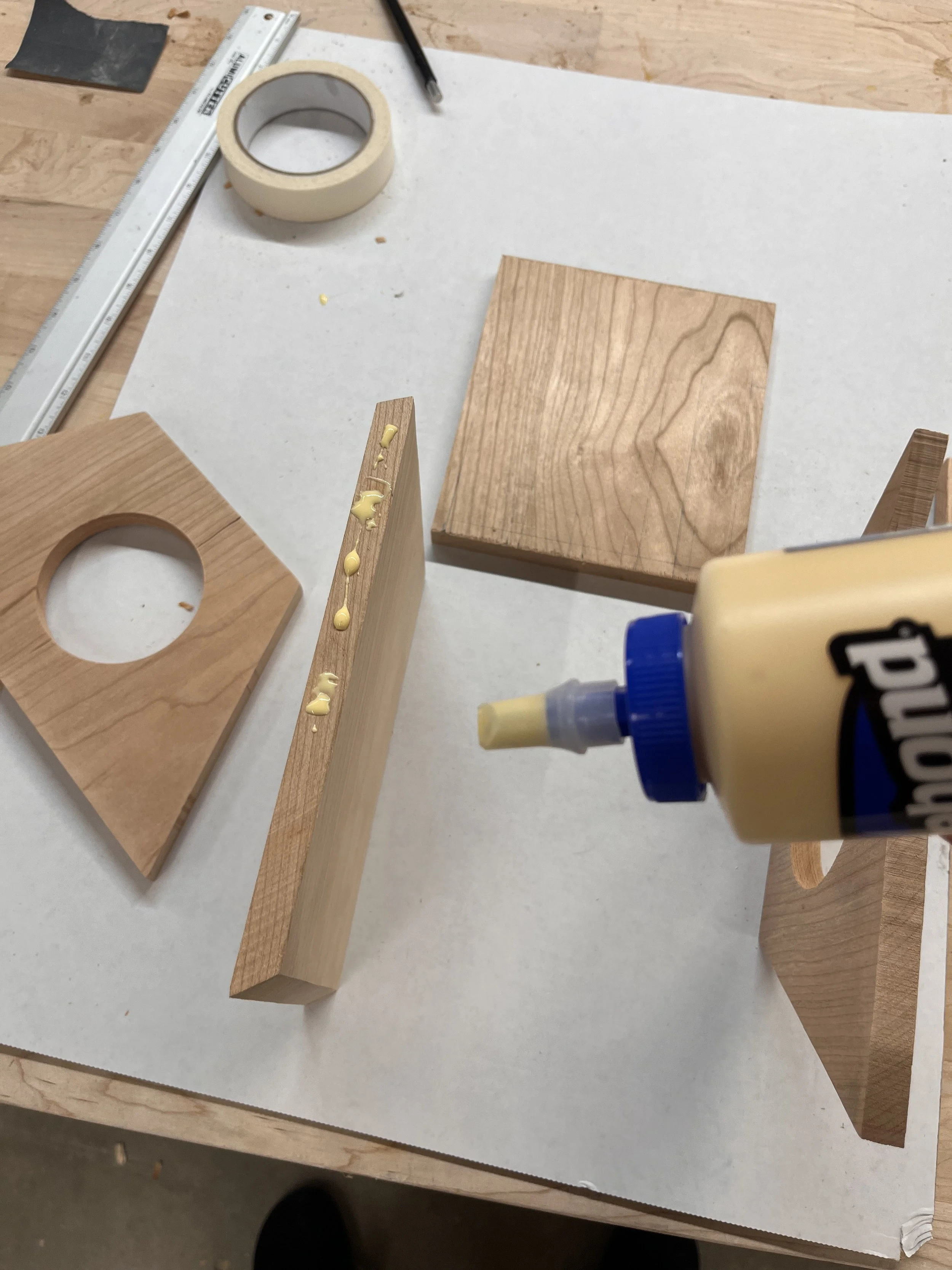 Cutting, gluing, and clamping wood