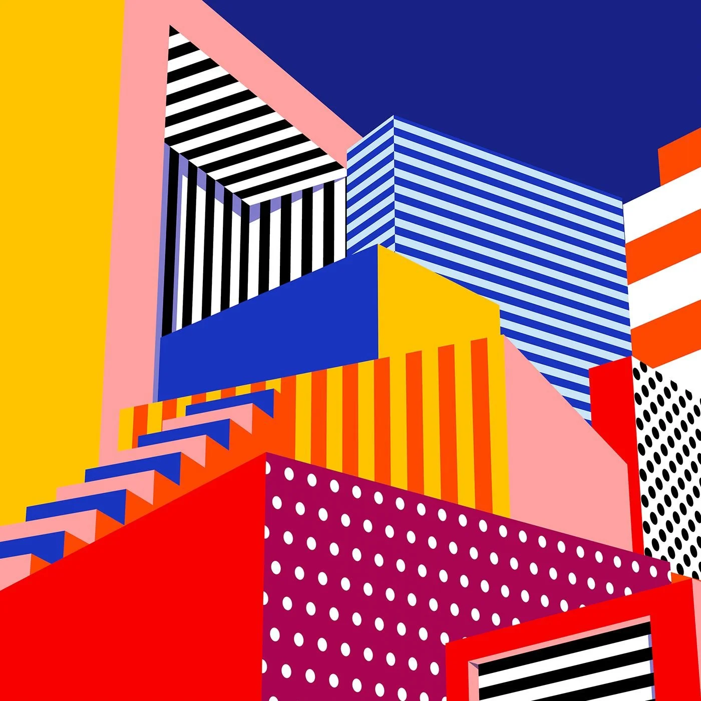 I drew the inspiration of my form from the rudimentary, angular shapes of the Memphis movement and the structural components of mid century architecture. The aesthetic goal was a bold and elegant structure.