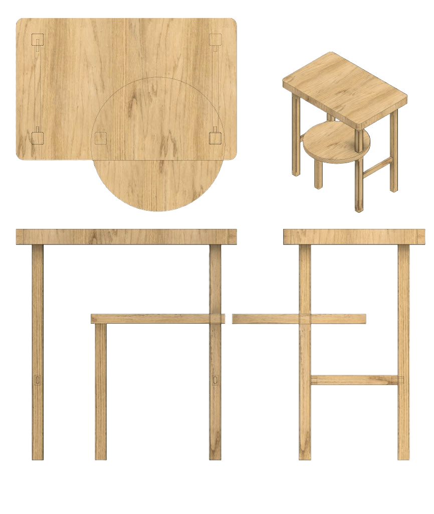 Used Fusion 360 to create a 1:1 and 1:4 scale drawing of my table for reference. Created a perspective rendering of the table on fusion